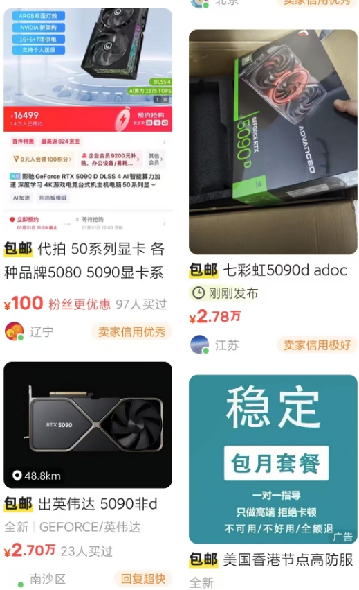 说实话,我不建议你去闲鱼买“期货”,因为最近很多预订50系显卡的客户都被骗了(商家因为资金周转等原因要求提前确定,否则订单会被取消),所以风险特别大,无法确定对方是否可靠。