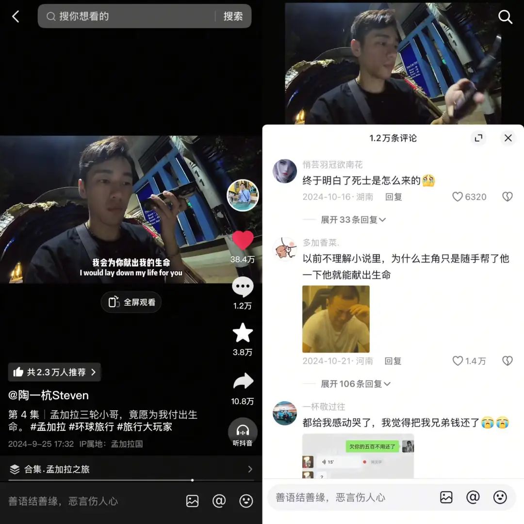 尽管没有剧本,但是每一个角色的故事都是如此相似。帮助孟加拉人力车夫的内容并不是最近才出现的,早在2022博主“大头小头旅行”就拍摄了类似的内容。