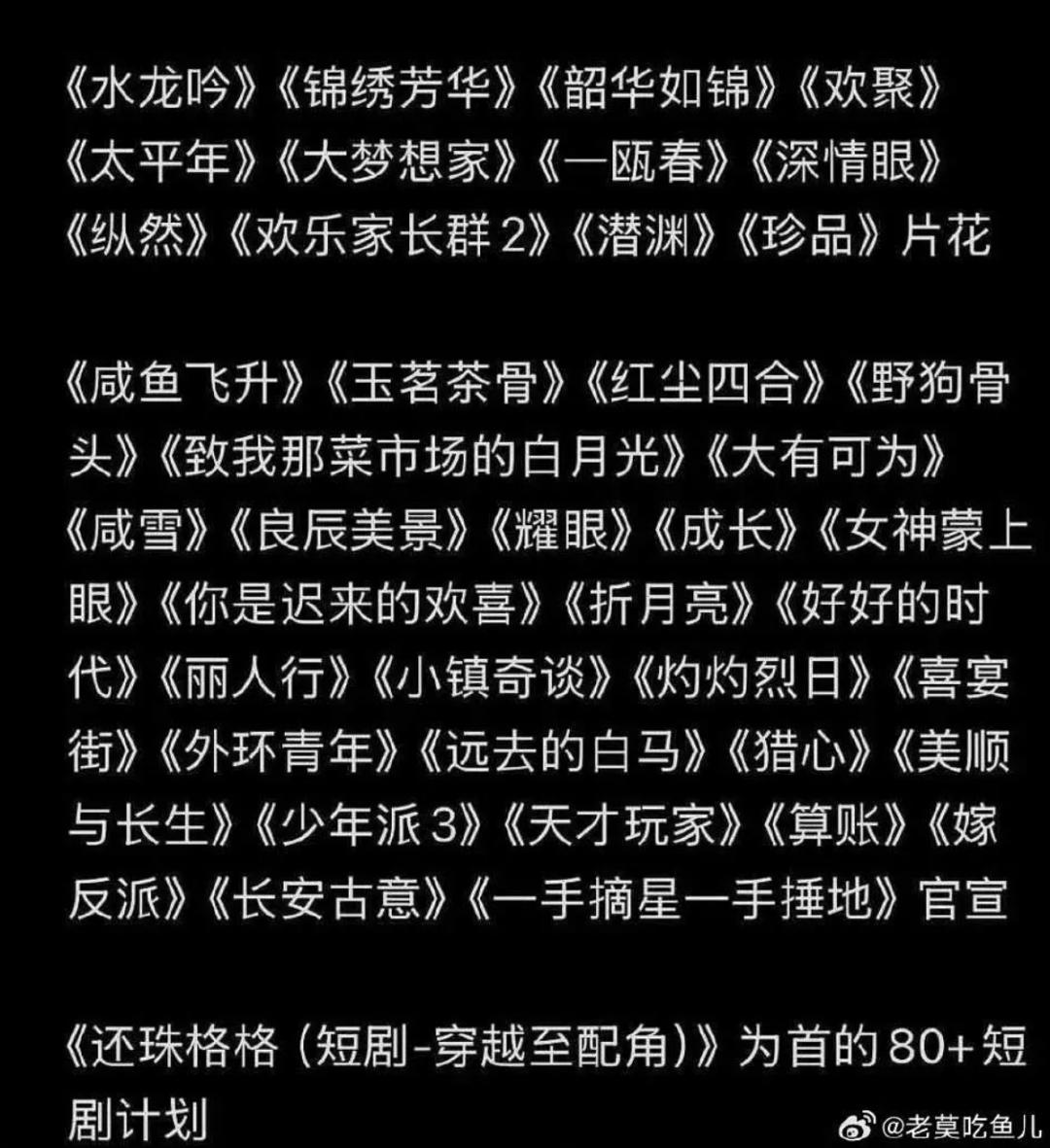 然而,5月15日的芒果电视招商会可能会给芒果精打一针强心针。除了备受期待的《国色芳华》续集《锦绣芳华》外,还可能有水龙吟、玉茶骨、咸鱼飞升等20多部重点剧集。不管是剧集数量还是演员阵容,与往年相比都是一次飞跃,难怪有人会怀疑地惊呼“芒果真的拼剧了吗?”