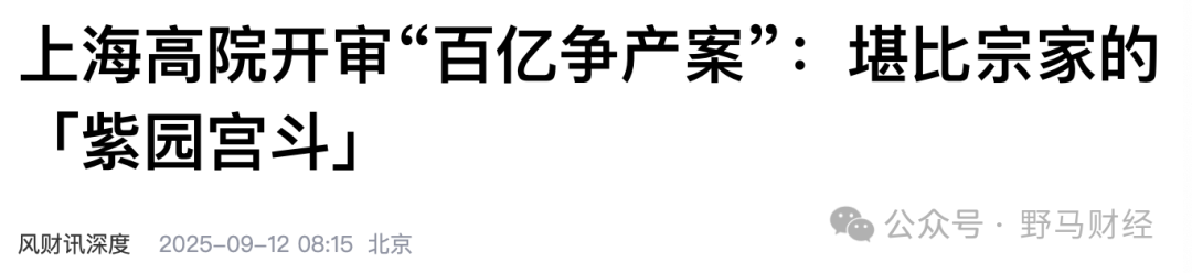 这一诡异的家族官司,因此被新媒体风财讯评价为:堪比宗家的“紫园宫斗”。将上海紫园的债权+股权案,与娃哈哈创始人宗庆后去世后,宗馥莉及非婚生子女爆发的家族争产案相提并论。