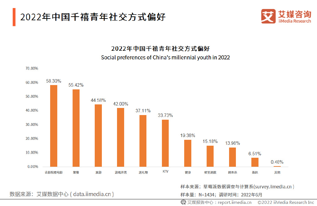 艾媒咨询分析师认为,千禧青年中,独生子女的比例较高,为了排解孤独感,对于社交的需求更为明显,也更倾向于不同种类的社交活动。