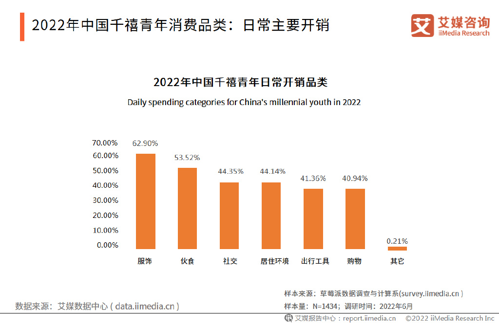 2022年中国千禧青年消费品类:日常主要开销
