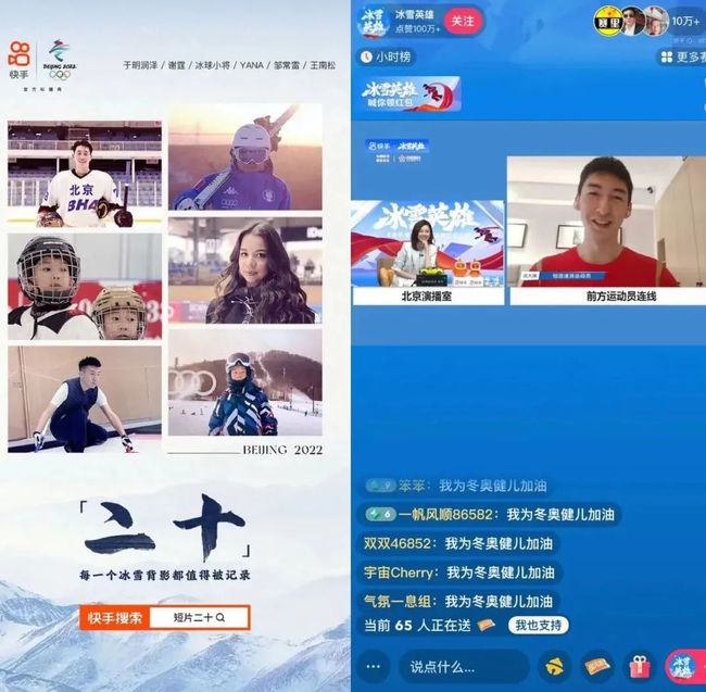 制作原创短片、原创节目也是快手在本次冬奥的一个创新。目前,快手为冬奥制作的多档原创节目均已上线,包括运动员访谈节目《冰雪英雄》、华少主持的直播节目《冰雪快报》、跨界竞技真人秀《冰雪队队碰》、自制赛事内容直播节目《全景看冬奥》等多元有趣的形式。
