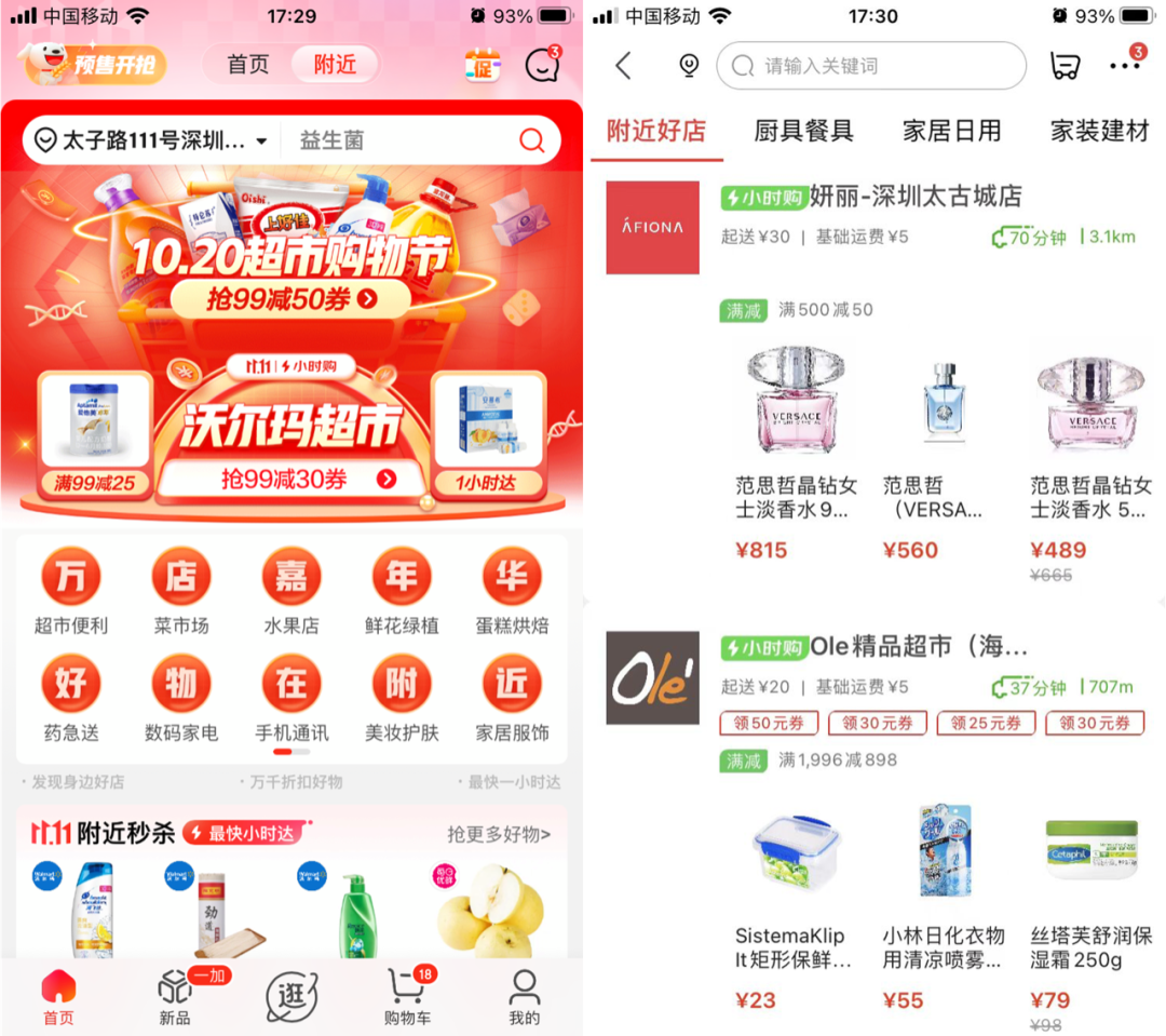 而附近频道作为小时购重要的中心化入口,已经覆盖全国主要城市。今年春节期间,小时购和京东到家平台上超过2/3的零售门店坚守营业,依托达达快送的配送保障,为消费者提供“春节小时达”的配送到家服务。除夕当天,小时购最快订单从消费者下单到签收,仅用时9分钟。
