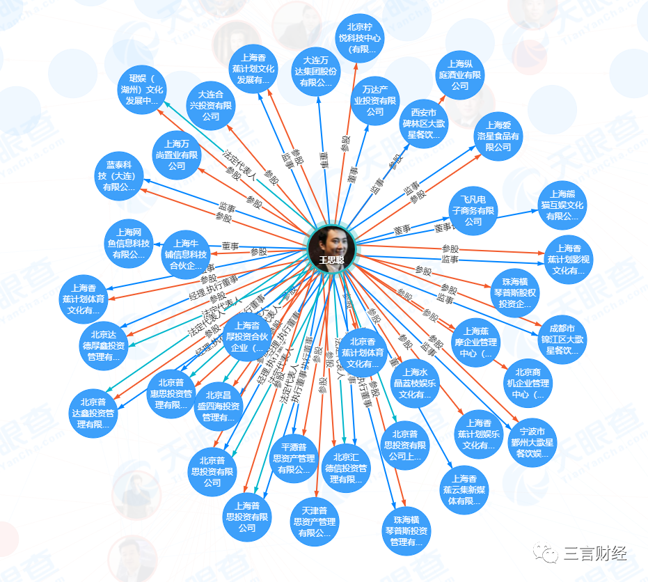 目前,王思聪共担任9家公司的法定代表人,在16家公司中担任董事长、董事、监事等管理职位,并在24家公司中持有股份,共拥有上百家公司的实际控制权。