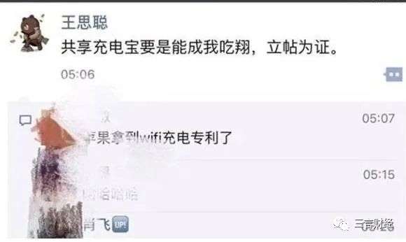 王思聪在朋友圈中发文:"共享充电宝要是能成我吃翔,立帖为证。"