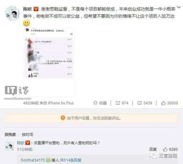 陈欧虽然没有明显的撕破脸皮,但是回应的也表现出不太满意。陈欧还曾调侃道:“求直播平台赞助,另外有人赞助翔的吗?”