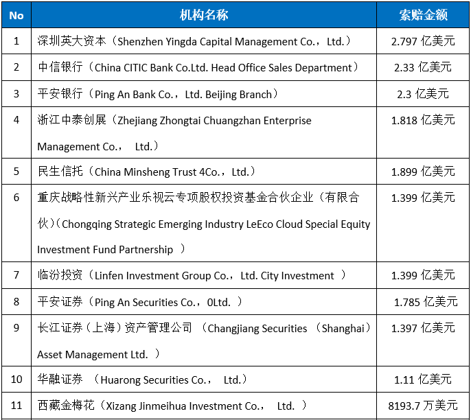 除了西部证券,已向贾跃亭索赔超过10亿元的机构多达五家。