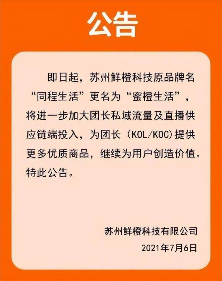 最先顶不住的是同程生活,这是同程旅游旗下的社区团购项目,这么不缺钱的主,却于2021年7月更名为蜜橙生活的同时,一脸生无可恋地宣布申请破产了!