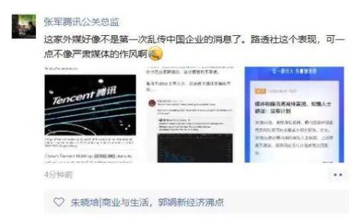 对此,腾讯公关方面回应财通社,不予置评。而美团方面也回应媒体,不予置评。发稿前,财通社还注意到,腾讯公关总监张军就该传闻在朋友圈作出了回应,指责相关媒体不严肃。