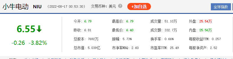 但不管如何调整,净利润大幅下滑已经变成不争的事实,受此影响,小牛电动的股价出现两连跌,继8月15日当日股价下跌6.7%之后,次日又出现近4个百分点的下跌,股价仅为6.55美元,较高峰值近15美元的股价下跌近6成,可见资本市场对小牛电动的惨淡财报完成“帽子戏法”极度不满意。