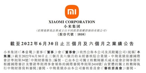 8月19日下午,小米集团(下称“小米”)发布2022年二季度财报,今年第二季度营收701.7亿元,同比下滑20.1%;经调整净利润20.8亿元,同比大降67.1%。但是小米全球MIUI月活跃用户数达到5.47亿。小米积极投入,研发开支同比增长22.8%,智能电动汽车等创新业务费用6.11亿,其表示会持续投入人形机器人和周边产业。另外,截至今年6月30日,小米中国大陆地区线下零售店数量已超10600家。从股价表现来看,小米集团今年跌幅超过38%。
