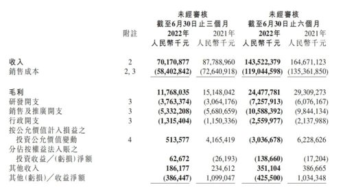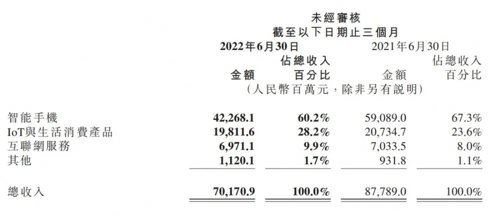其中,智能手机分部收入由2021年第二季度的591亿元减少至2022年第二季度的423亿元,同比下降28.5%,主要是由于智能手机出货量减少所致。