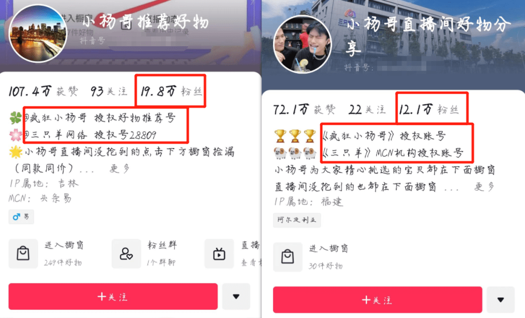 大概从今年的五月份起,抖音快手上出现了大批的直播切片账号,并且在主页就表明了“ 非主播本人,但已获得官方授权,同款好物可在橱窗购买”。