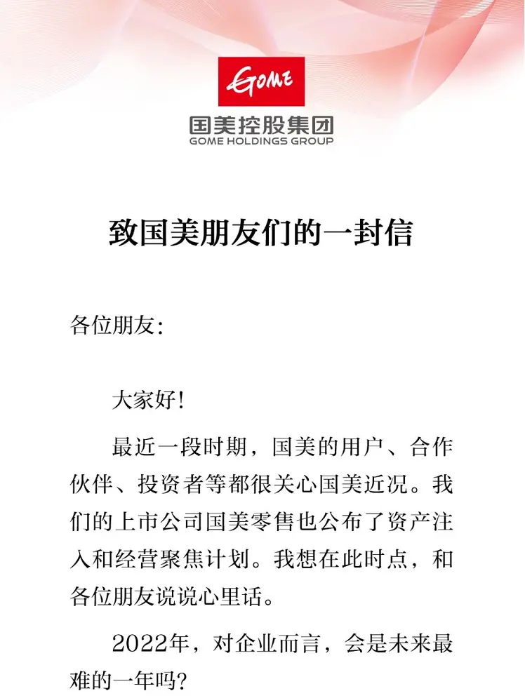 黄光裕在公开信中写道:“2022年,对企业而言,会是未来最难的一年吗?”