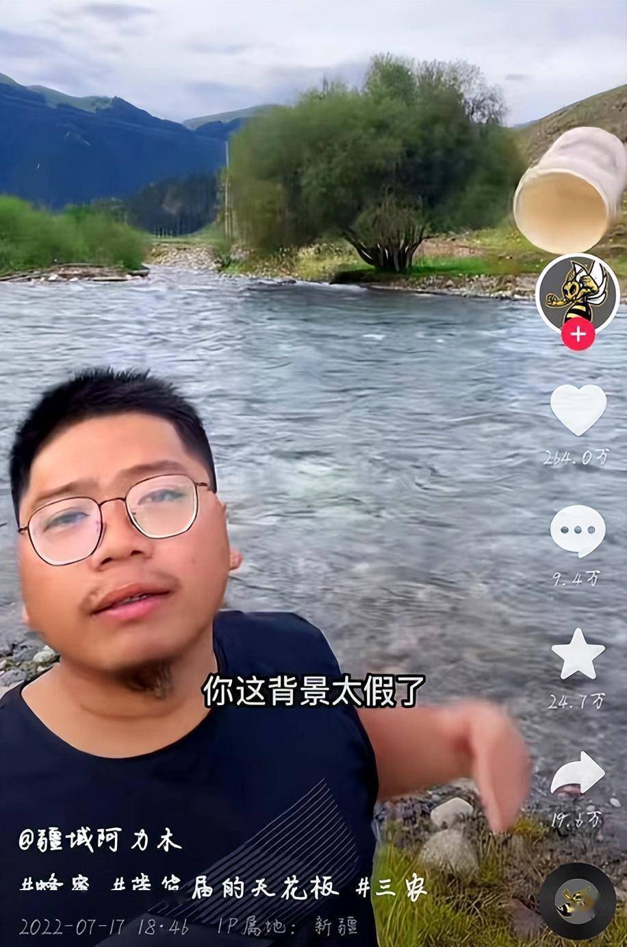 说来也巧,不久前一位ID名为“疆域阿力木”的博主也曾因巨大反差走红。当博主直播时,总有人在评论区说“ 你这背景太假了”,“疆域阿力木”只能通过将桶扔进水里来“辟谣。