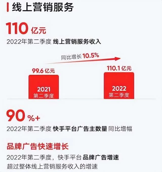 2021年全年财报显示,快手的线上营销服务营收首次超过直播业务。改变单一依靠直播的营收模式,快手广告和电商业务的比重正在稳步增加。