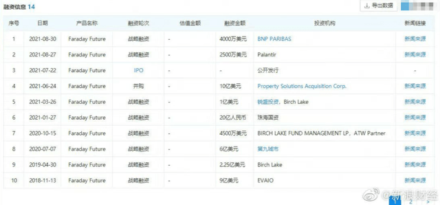 据公开资料显示,FF的融资次数为14次,总融资金额已经超过50亿美元,其中甚至不乏有国资。