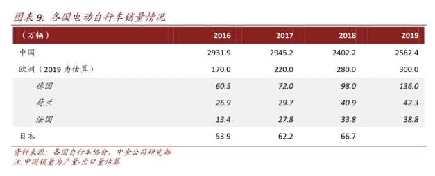 在各国电动自行车销量统计中,我国电动自行车的销量甚至是其他国家的两个数量级。除了与通勤距离的适配性外,另外“禁摩令”、外卖和共享电单车的崛起也极大地推动了两轮电动车的发展。