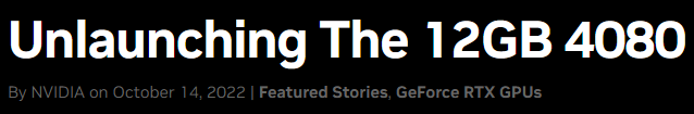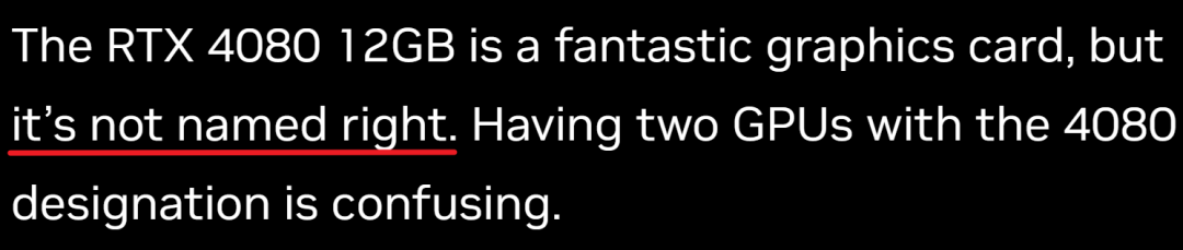 最终,英伟达在官网发了个开头提到的帖子,说我们要撤销 4080 12GB,因为我们自己也发现这个名字不对,有两个 4080 是非常让人困惑的。
