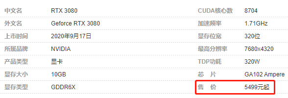 因为要知道,上一代 3080 的售价可是 5499 元。。。