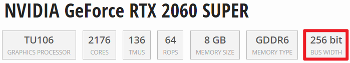 但凡你舍得多掏几百块钱上 2060 Super,那么位宽就能来到 256bit。