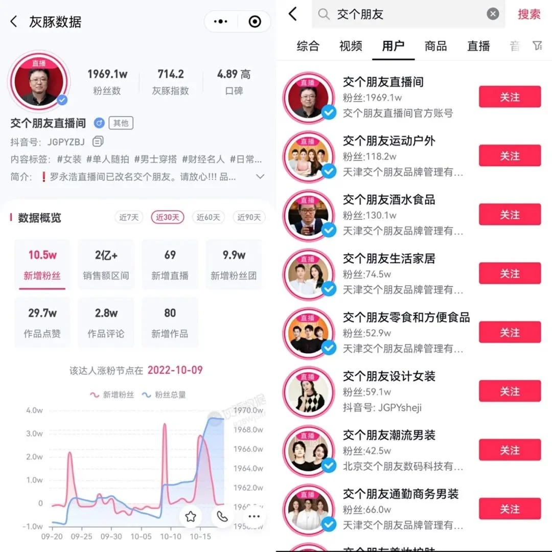 亮相淘宝直播间,率先拆除壁垒。2020年,罗永浩是第一个专职做直播带货的企业家,2022年,罗永浩又是第一个将“多平台栖息”摆上台面的头部主播。罗永浩再次打头阵,不过这一次,是替背后的“交个朋友”开疆拓土。随着市场的变幻,渠道早已不是一道1或2的选择题,成年人选择都要的背后,老罗入淘的另一层含义,或将是头部MCN机构迎来集体多栖。