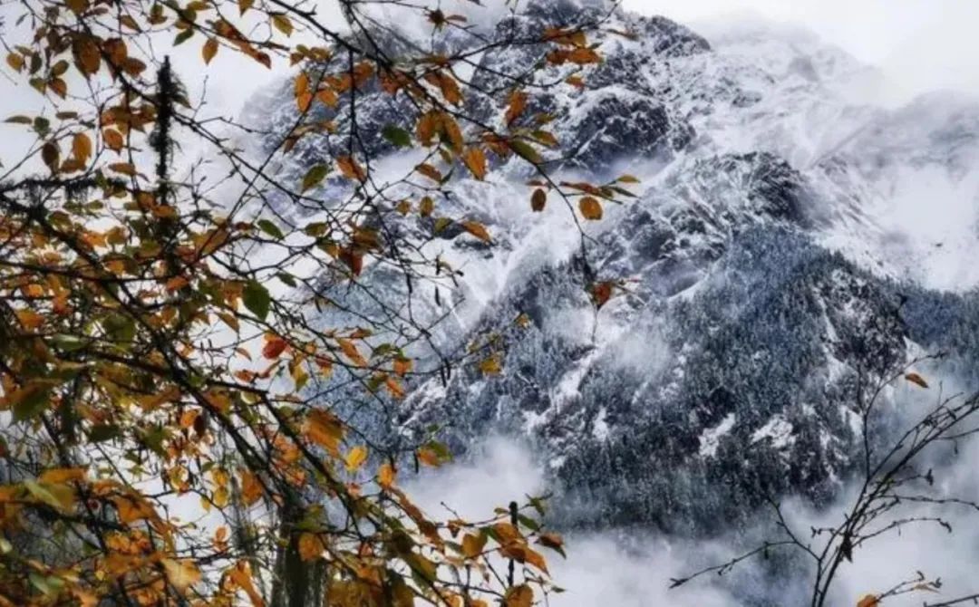 酒店数公里外,伴随着冷空气的到来,一层初雪、一场霜寒之后,九寨沟枝头的橙黄与青翠映衬着白雪,只不过这幅景致与绝大部分游客无关。