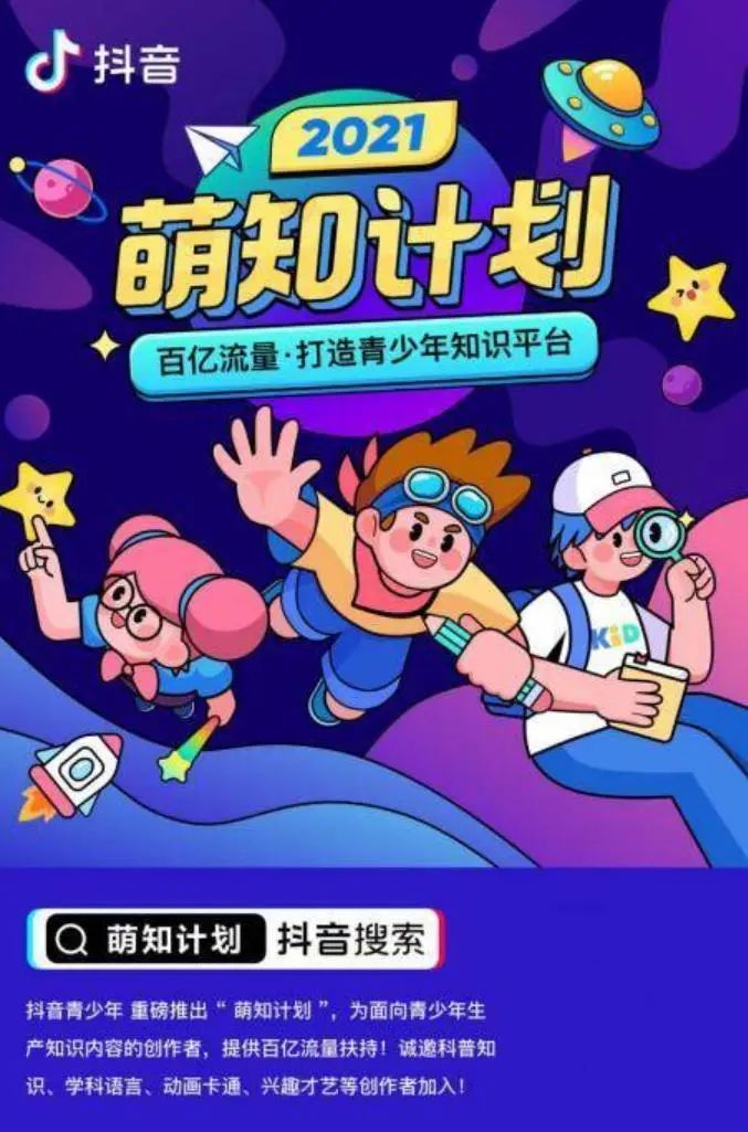 在积攒了一定的用户基础之后,抖音知识也逐渐向垂直类知识内容进军,打造了针对青少年群体的“萌知计划”,这一计划主要是鼓励知识内容创作者创作更多适合青少年人群学习的知识内容,相对低龄化。