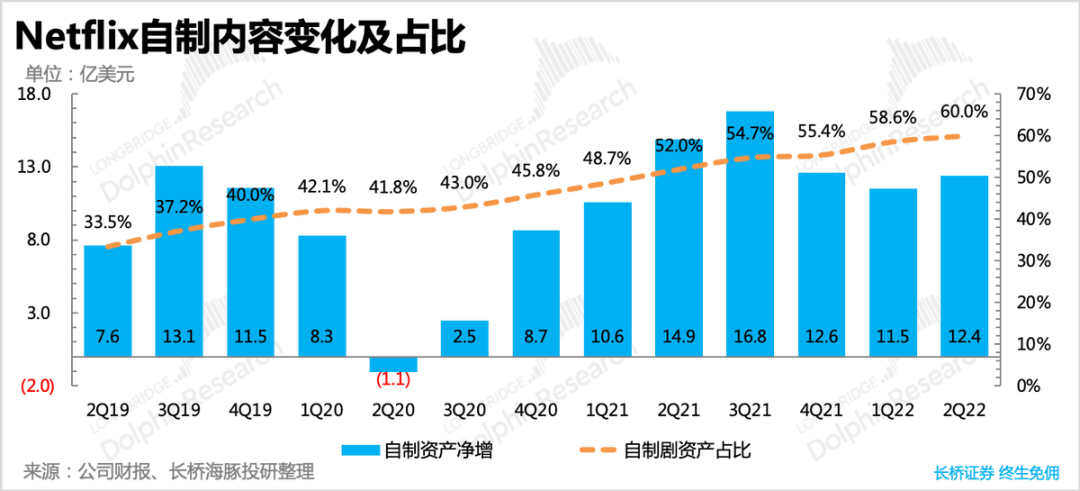 3)截至二季度末(三季度业绩简报不披露),奈飞的自制内容占比达到60%,从历史情况来看,基本是持续上扬的状态,印证了海豚君去年的判断,竞争加剧下,自制内容是深化优势的核心关键,因此占比提高是必然的。