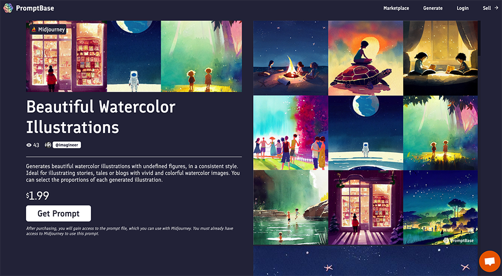 比如今年6月成立的PromptBase,就是一家靠兜售AI绘画工具“提示词”发家致富的公司。用户可以从PromptBase这里花1.99美元买一个“提示词”,将其复制到DAll·E、Midjourney、Stable Diffusion等平台,就能生成质量上乘的作品。