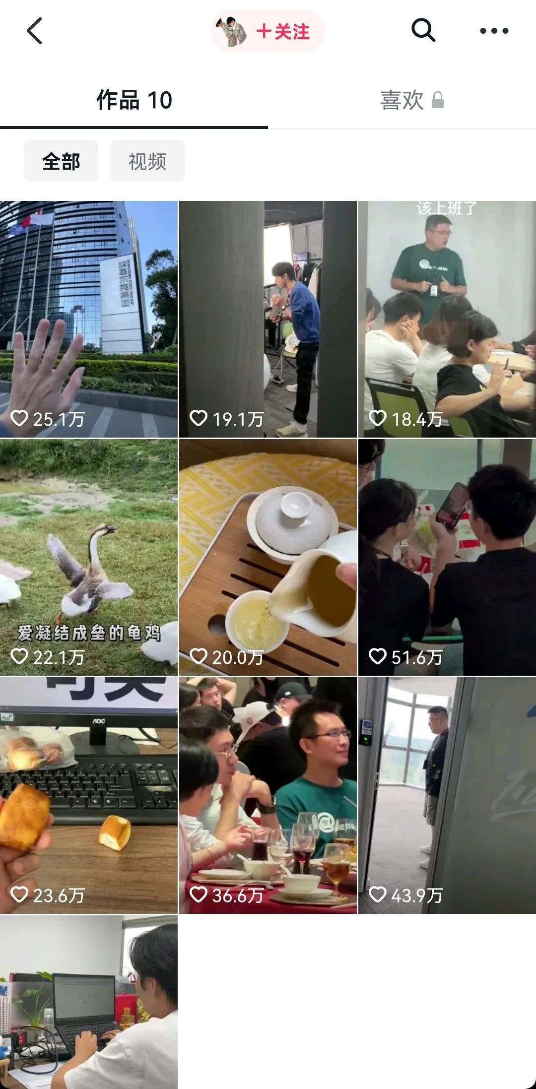 与此同时,疯狂下属视频出现的上司“高总”也化身“网鸿老高”开始在短视频平台上更新作品。从9月27日发布第一条视频到现在已经积累了1万多的粉丝,获得了5.3万的点赞量。带有“鸿”字的昵称、显示着“2022年鸿星尔克电商登顶泰山”的封面照片以及写着To Be No.1的个人简介等这些元素都深深打上了鸿星尔克的印记。也让大众知道了“疯狂下属”所在部门其实是电商部门。