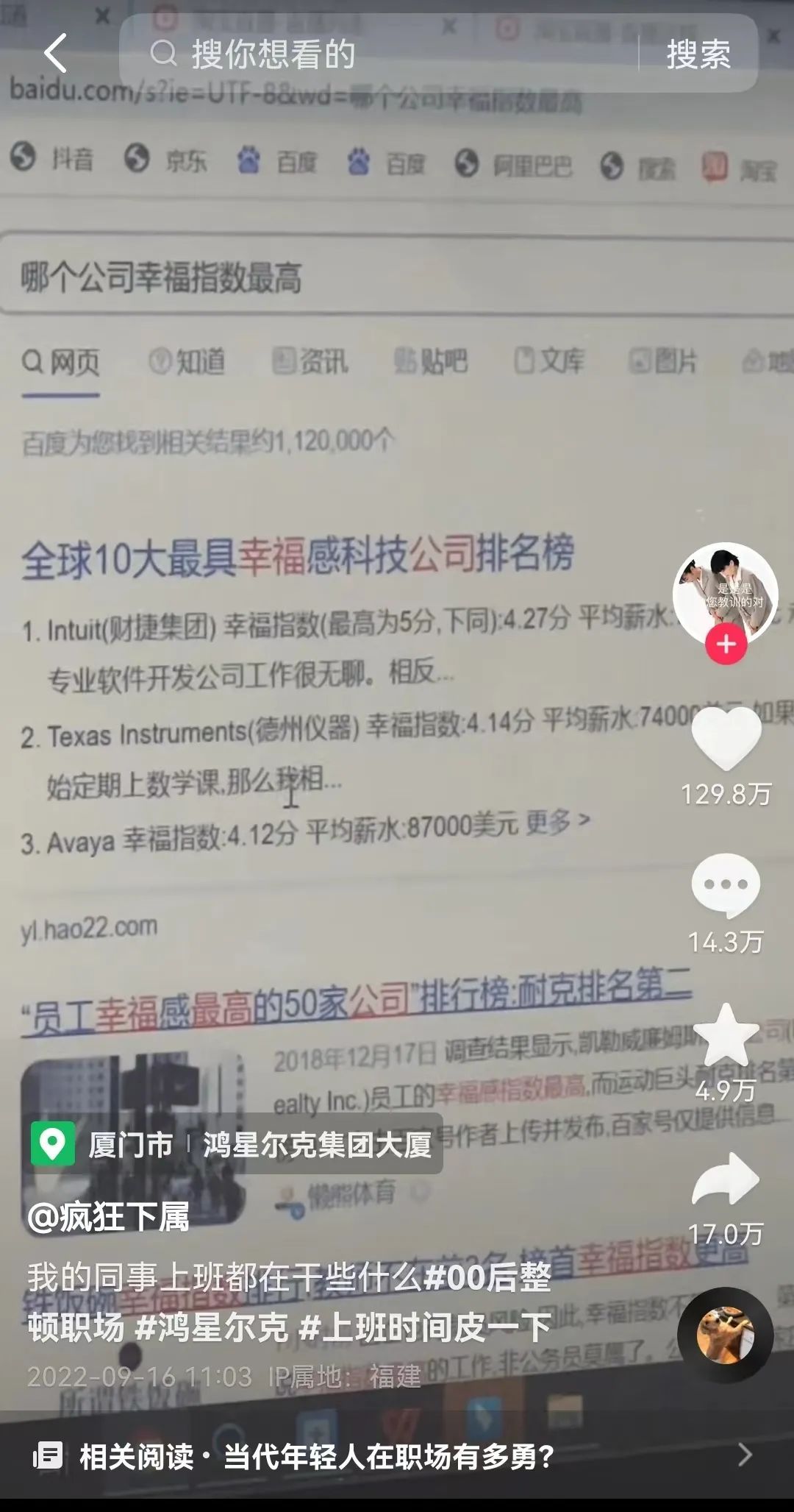 偷拍同事在上班的时候搜索“哪个公司的幸福程度最高”