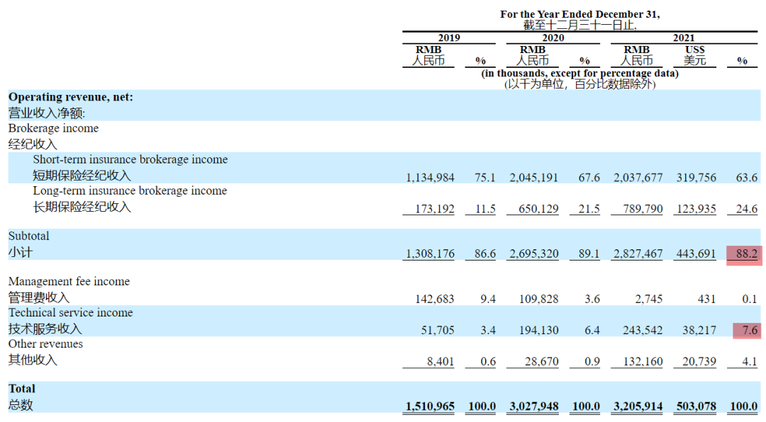 险经纪收入跟技术服务收入加起来,去年达到了 95.8%,可以说是相当夸张。