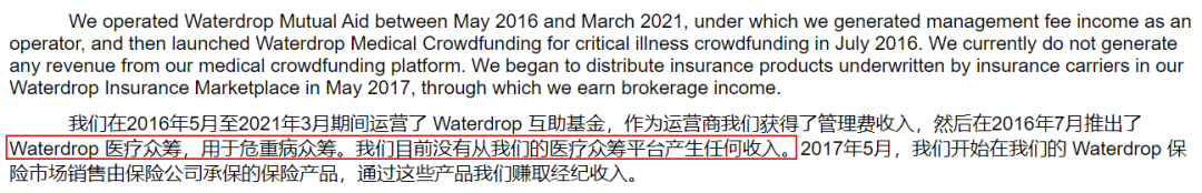 但同时,去年他们上市时的招股书里表示:我们目前没有从 “ 水滴筹 ” 上产生任何收入。
