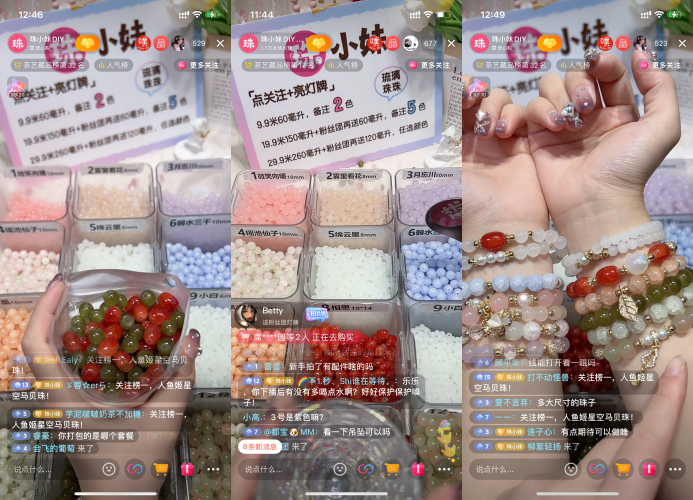 现场下单、由主播亲自为你挑选商品的形式开始在抖音直播间渗透。不仅仅是串珠市场,与之相类似的还有发饰发卡。