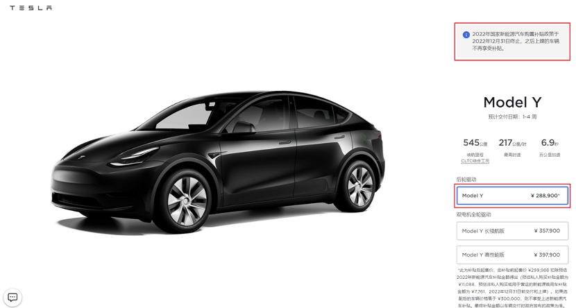 10月24日,特斯拉中国官网显示,Model 3后驱版本由27.99万元降价1.4万元至26.59万元,高性能版36.79万元降价1.8万元至34.99万元。