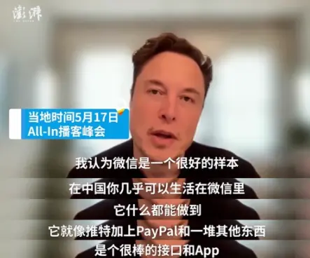 在网络上流传较广的一个视频中,马斯克毫不避讳地表示将直接“抄微信”。