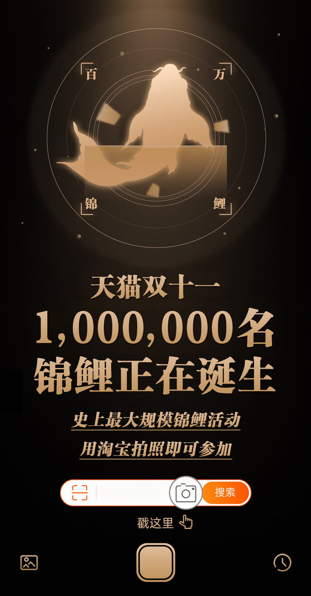11月3日,天猫宣布:上线最大规模的锦鲤活动,用户使用淘宝拍照功能就可以参与。天猫双11组委会介绍说:“整个双11期间,将累计诞生超100万名锦鲤用户,单人单日最高能拿将49999元。”