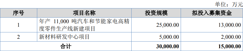 IPO募资方面,本次公司拟募资1.5亿元,资金将用于年产11000吨汽车和节能家电高精度零件生产线新建项目、新材料研发中心项目等。项目建成投产后,将有助于解决公司产能不足的问题,为进一步满足不断增长的市场需求创造有利条件。
