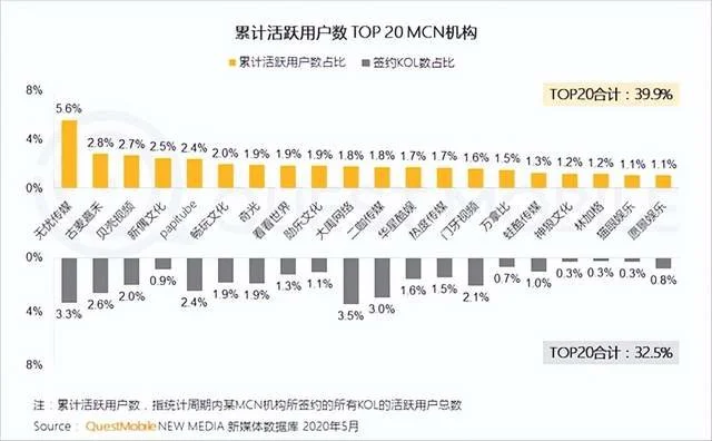 相关数据显示,top20的MCN签约KOL数量占据总体的比例超过三成。头部网红呈现出越来越聚集的趋势,这是因为单一IP的抗风险能力和经营稳定性都存在一定的不足。
