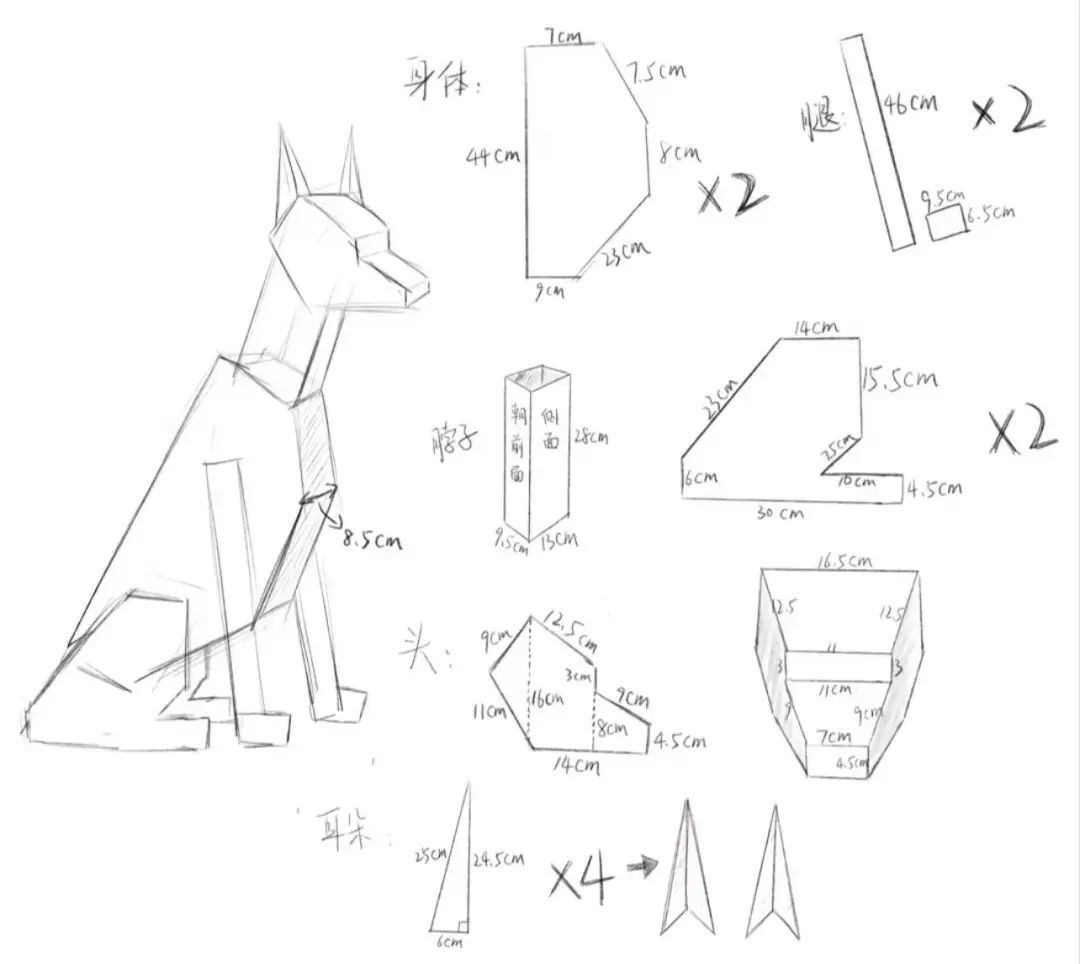 如果想挑战一下自己,做一只威风的杜宾犬或者德牧,可按图片所示拼接。