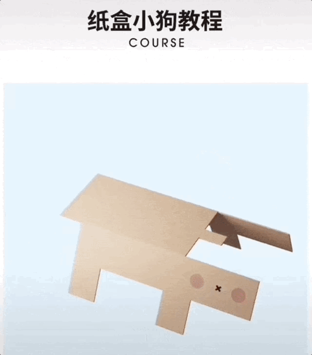 接下来把纸箱按动画里的方法折叠起来,粘上狗头即可。