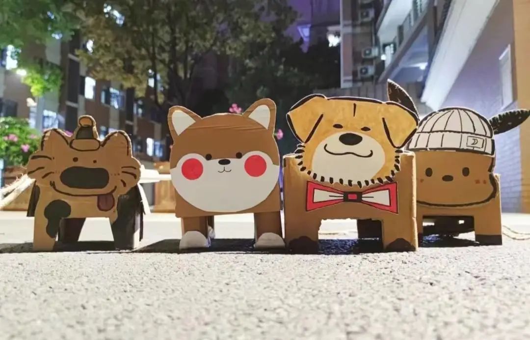 当代大学生不得了,睿智的大脑和灵巧的双手 buff 拉满,用纸箱整出了千奇百怪的校园「宠物」。