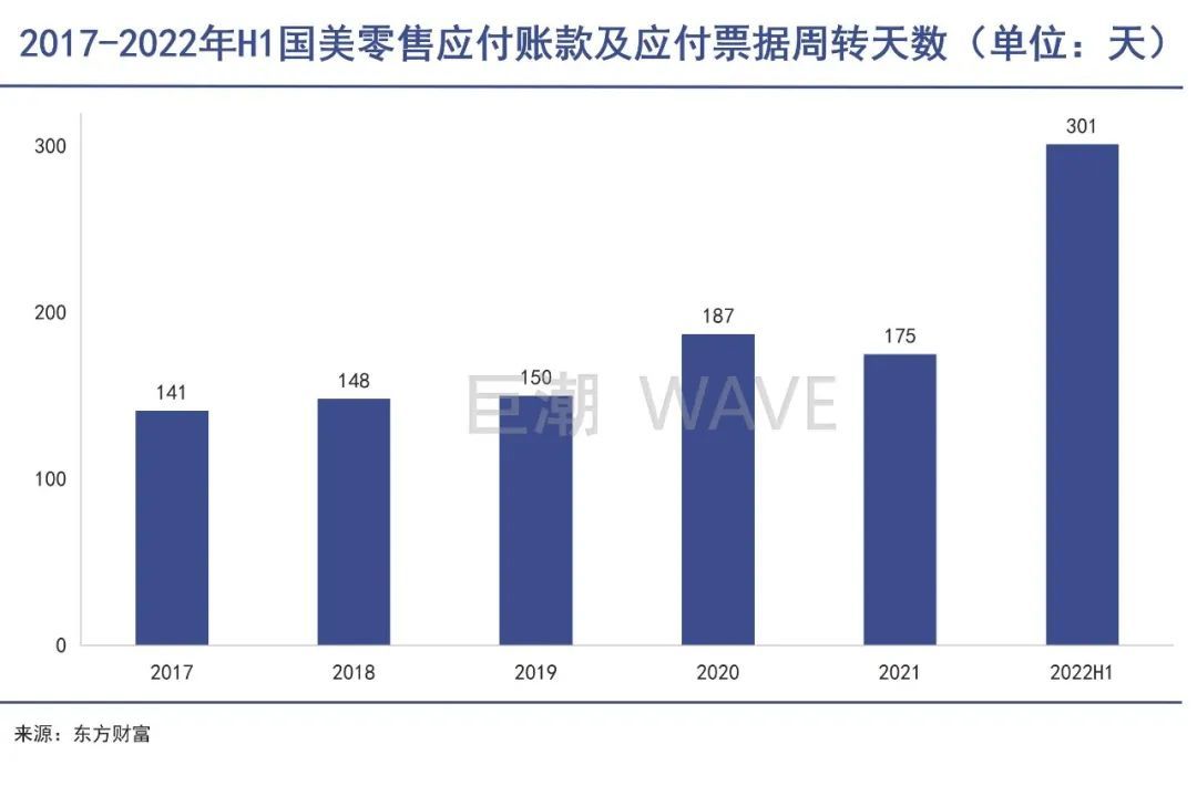 更加严重的是,根据国美零售2022年中报的数据显示,其应付账款及应付票据的周转天数已经增加至约301天,几近一年。