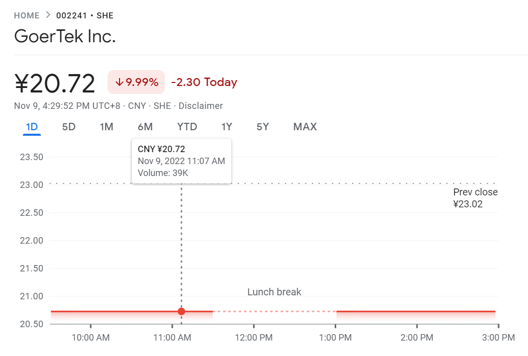 11月8日晚,歌尔股份在深交所发布了一则风险提示性公告:
