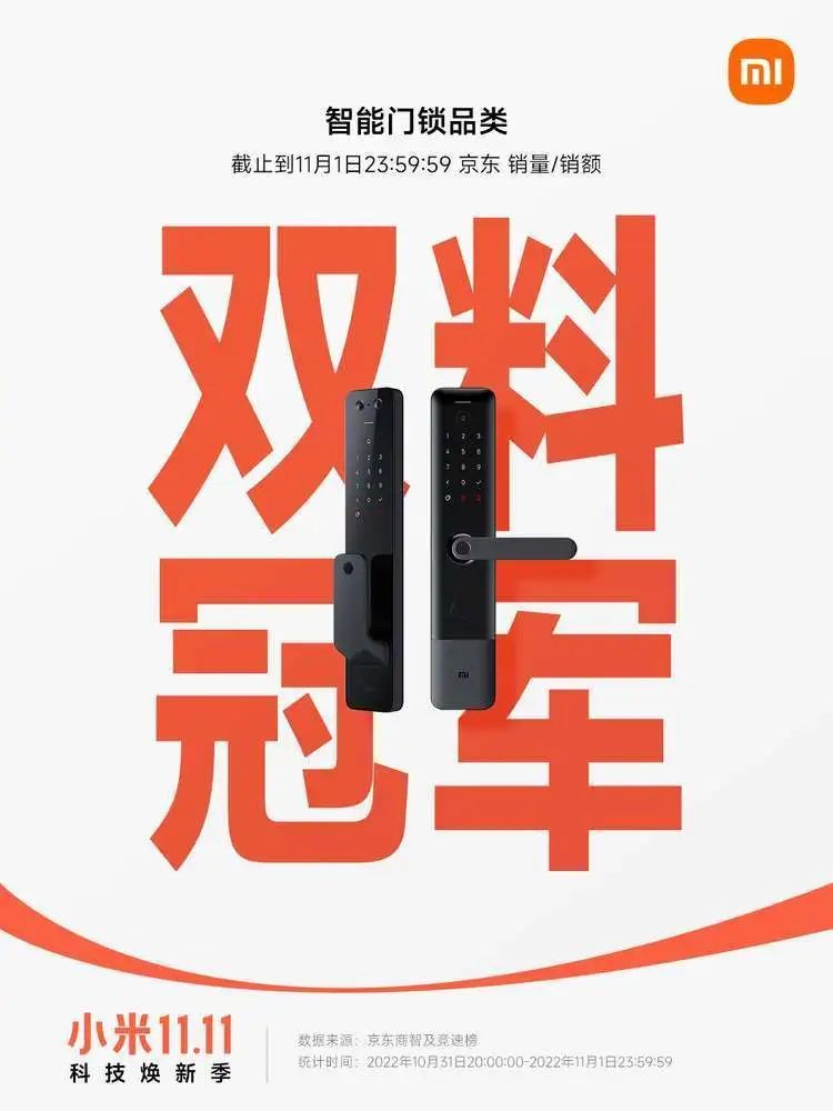 比如在2022年双十一活动的第一个晚上,包括小米、Aqara、欧瑞博在内的各大智能家居品牌品牌就纷纷在微博公布了当晚销冠的战报。其中小米智能门锁产品在京东智能门锁品类实现了销售额和销量的双料冠军,Aqara的智能开关品类则在全网实现了销售额和销量的“两冠王”,从结果来看,今年的双十一可以说就像是智能家居的“丰年”。