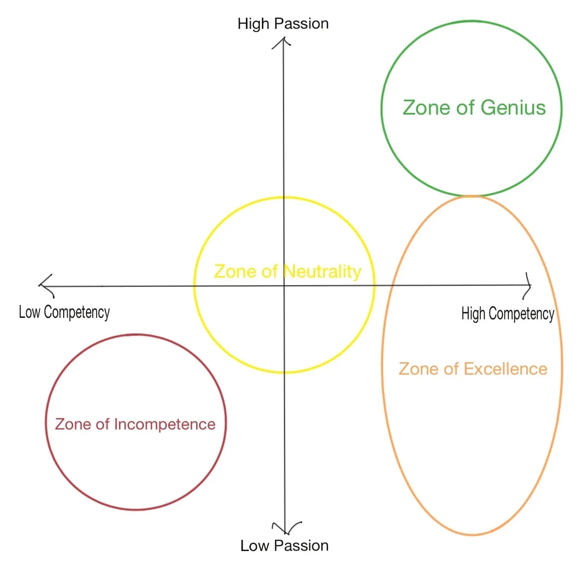 我花了大约 8 年的时间来确定自己的“天才区”。寻找天才区路上的一个陷阱是“卓越区”,在这个区域,你非常有能力,但对工作没有激情或精力。你会被人拍着胸脯说你很棒,这可能会让人陶醉,并围绕这项工作建立起动力,但这并不是你想要的结果。对“卓越区”要保持警惕,并坚持不懈地寻找你的“天才区”。