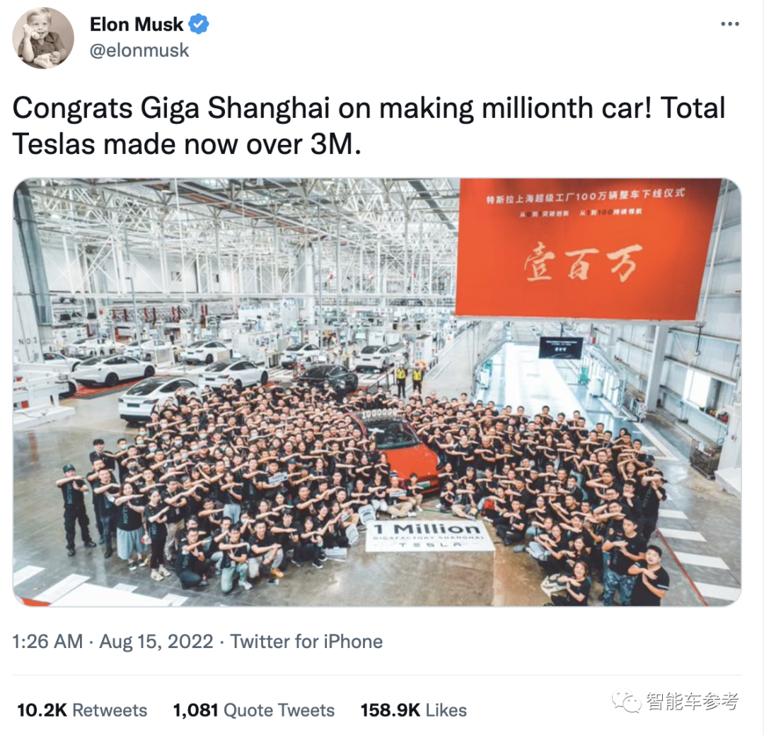 今年8月15日,特斯拉上海工厂第100万辆电动汽车下线,开工两年多就达到了这个成绩,创造了特斯拉超级工厂的新纪录。