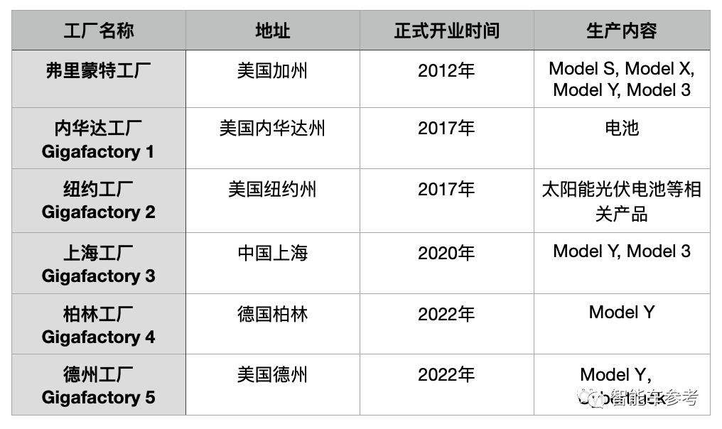 其中用来生产制造整车的,主要是弗里蒙特工厂、上海工厂、柏林工厂和德州工厂4家。